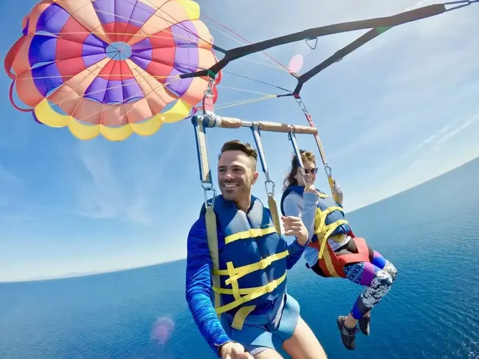 Если один из людей в бронировании не летит на парашюте (бронируется заранее), но при этом сопровождает в лодке, стоимость программы составит 13$, дети до 12ти лет 8$, дети до 5ти лет 3$.
