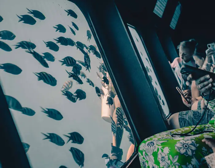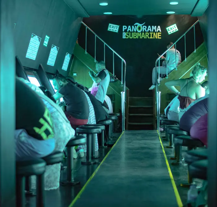 Экскурсия включает в себя: спуск на нижнюю палубу для начала подводного путешествия (лодка НЕ погружается под воду), подъём на верхнюю палубу, пока добираетесь до места снорклинга и купания, снорклинг в море на рифе с маской и ластами, прибытие обратно в марину и пересадка на лодку для поездки в море (возможно небольшое ожидание), инструктаж и полёт на парашюте, чтобы увидеть регион Красного моря с высоты птичьего полёта.